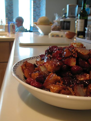 Add a big splash of bourbon and reserved cranberries and cook just a few minutes more, just until some of the alcohol cooks off.